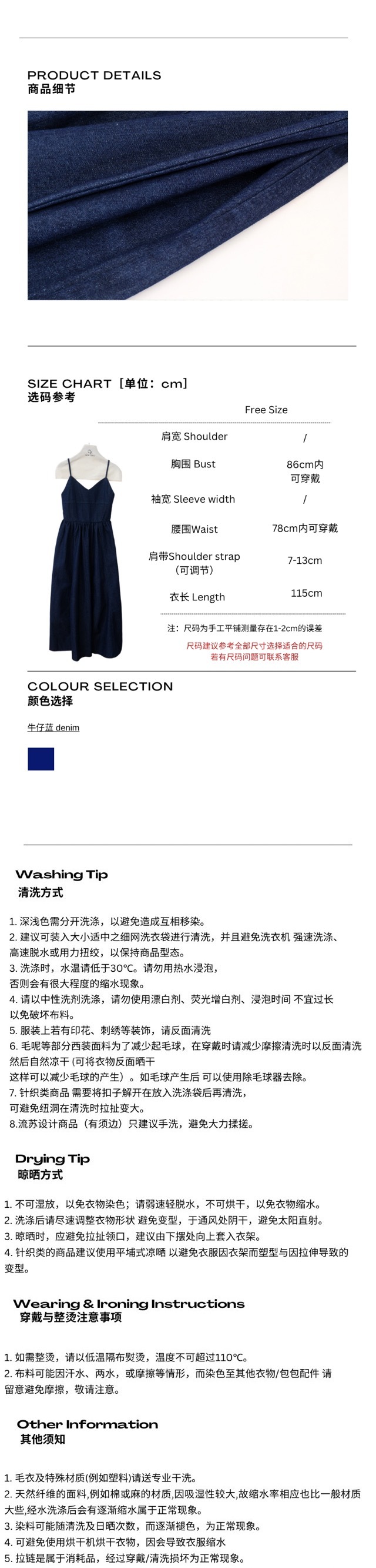 高品质单宁牛仔蓝V领连衣裙
